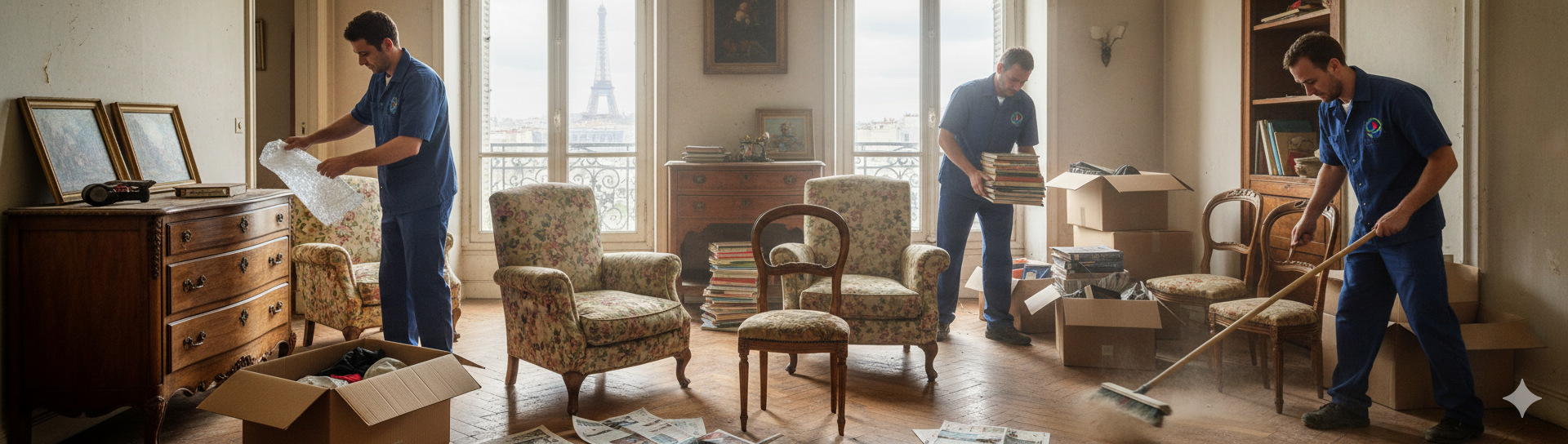Vide-maison à Paris et en IDF : tri complet, valorisation des objets, évacuation des encombrants vers des filières agréées et nettoyage final. Devis gratuit immédiat – intervention 7j/7.